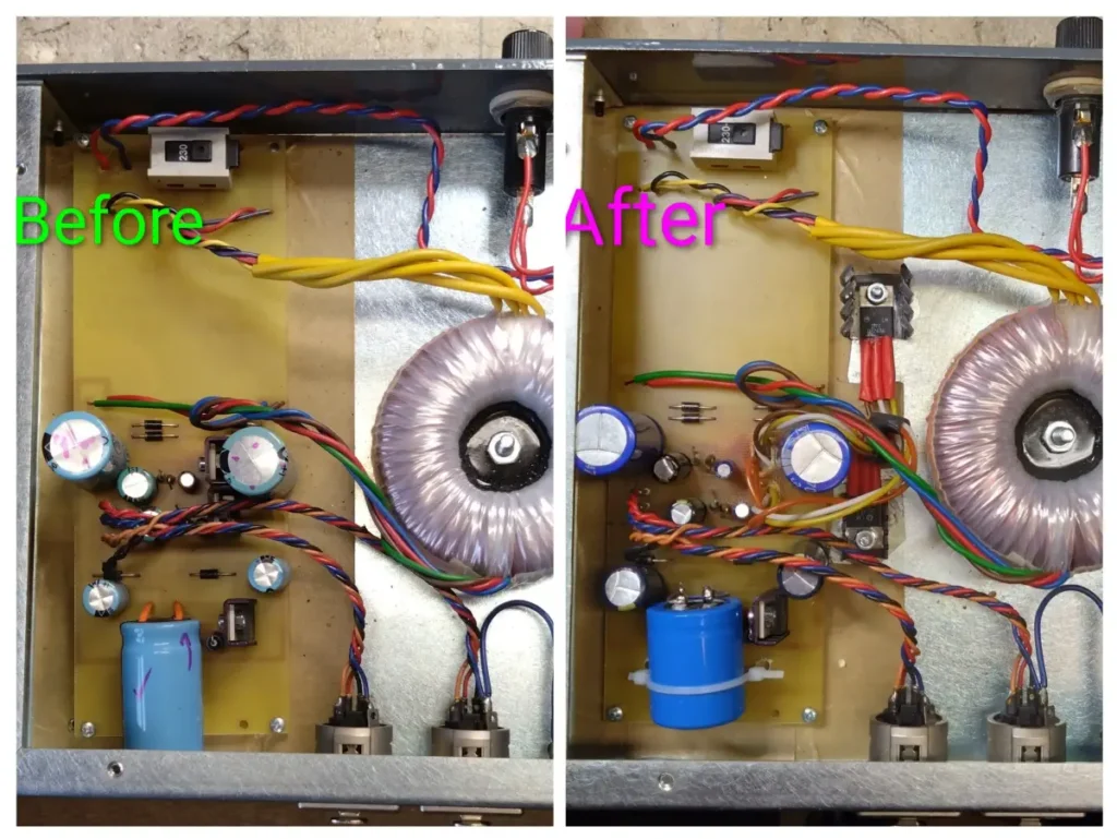 - On some models there are some pointless internal LED and resistors that run hot and have the effect of helping to prematuely age the capacitors. This is on the MKII version of the PSU so not on all of them but it is a worthwhile modification.